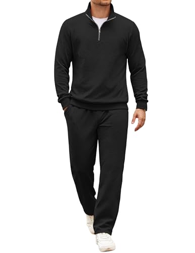 Specification: COOFANDY Men’s Tracksuit 2 Piece Set Geometric Texture Quarter Zip Pullover Sweatshirt Athletic Running Sweatsuits