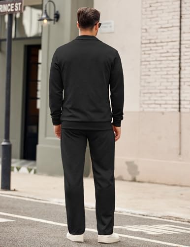 COOFANDY Men’s Tracksuit 2 Piece Set Geometric Texture Quarter Zip Pullover Sweatshirt Athletic Running Sweatsuits