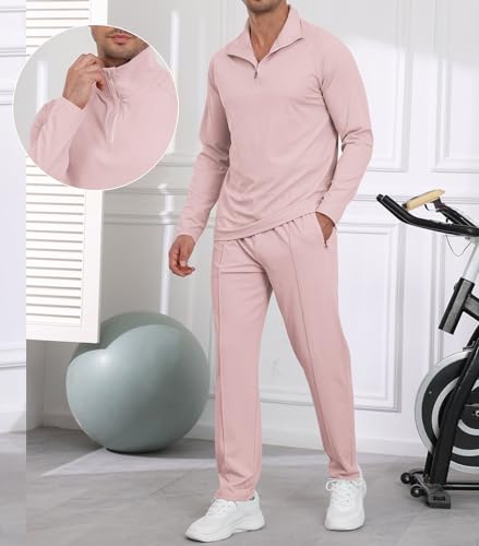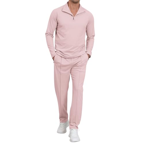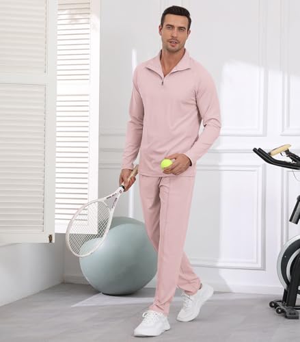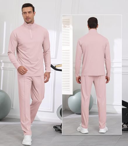 Lexiart Golf Quarter Zip Pullover for Men Tall Track Suits 2 Piece Set Lightweight Sun Protection Long Sleeve Shirt and Pants
