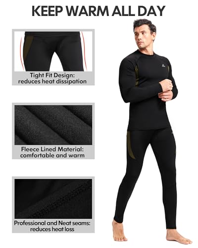 CL convallaria 2 Pack Mens Thermal Underwear Fleece Lined Long Johns Winter Base Layer Cold Weather Hunting Gear