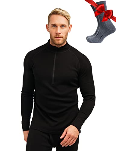 Merino Wool Base Layer Mens – Wool Half Zip Sweater Men – Merino Quarter Zip Sweater Lite, Midweight, Heavyweight and Socks