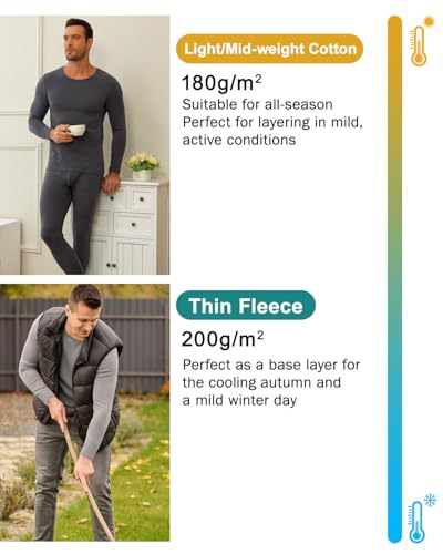 Specification: wirarpa Men’s Cotton Long Johns Thermal Underwear Set Base Layer Lightweight Long Sleeve Top and Pajama Bottom