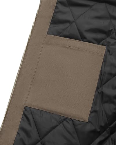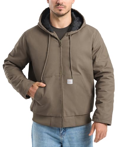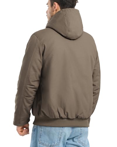 HISEA Men’s Winter Work Jackets, Water Resistant Hooded Duck Canvas Coat, Loose Fit Insulated Utility Jacket with Pockets