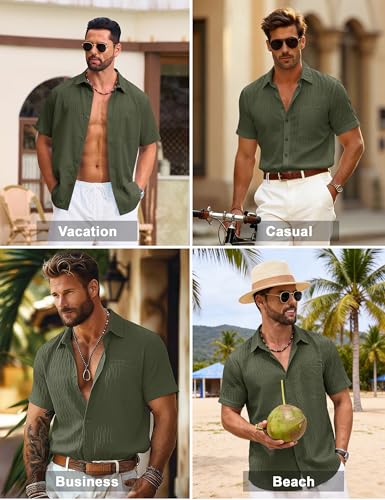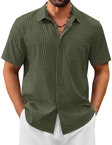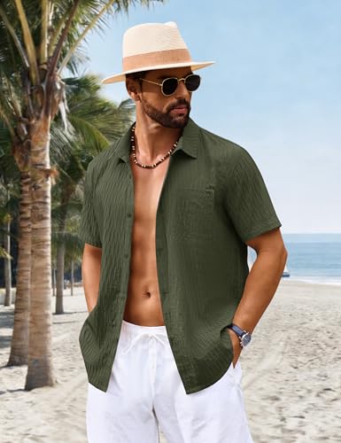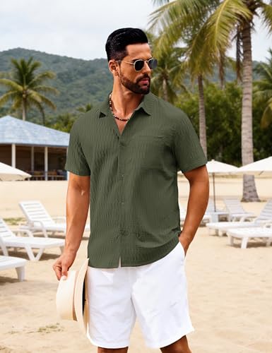 Cotrasen Men’s Short Sleeve Button Down Shirts Casual Textured Shirts Summer Beach Vacation Shirt with Pocket