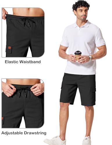 COOFANDY Men’s Casual Cargo Shorts 10″ Drawstring Elastic Waist Shorts Summer Cotton Chino Work Shorts with 6 Pockets