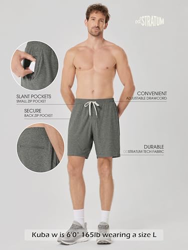 ODODOS Men’s Performance Shorts 7″ – Ultra Soft odSTRATUM Tech Everyday Shorts with Adjustable Waist and Secure Pockets