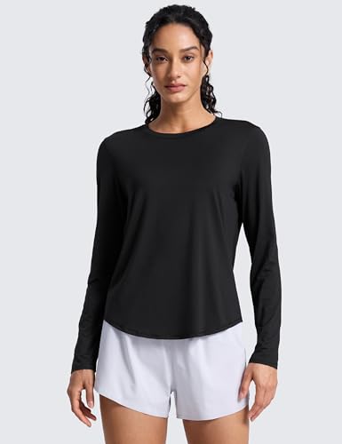 CRZ YOGA Lightweight Workout Long Sleeve Shirts for Women – Gym Running Fall Athletic Training T-Shirts High Neck Tops