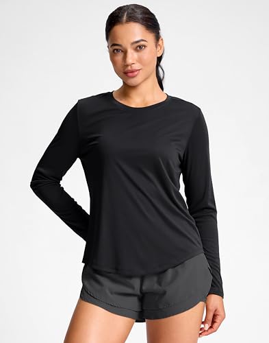 SANTINY Lightweight Long Sleeve Workout Tops for Women Breathable Tennis Active Sports Top Gym Yoga Athletic Running Shirts