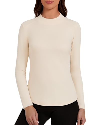 Bonneuitbebe Women’s Thermal Top Long Sleeve Fleece Lined Undershirts Mock Neck Stretchy Base Layer Tops Cold Weather