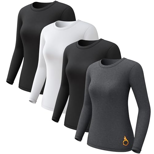 CL convallaria 1 2 4 Pack Women’s Thermal Underwear Tops, Women Fleece Lined Long Sleeve Baselayer Shirt for Winter