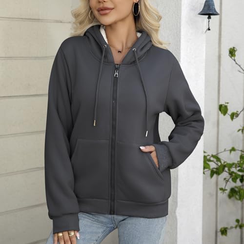 VOHOTO Women’s Sherpa Lined Full Zip Hoodie-Ultra Warm Winter Sweatshirt Jacket, Thick Fleece, Drawstring Hood for Daily Wear