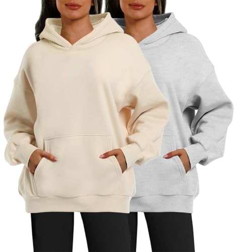 XFIFM 2 Pack Womens Oversized Hoodies Sweatshirts Fleece Hooded Pullover Tops Sweaters Casual Comfy Fall Fashion
