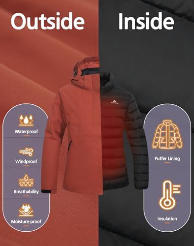 Pioneer Camp Women’s 3 in 1Waterproof Ski Snow jacket Windbreaker Insulated Puffer Liner Jackets Winter Raincoat Outdoor