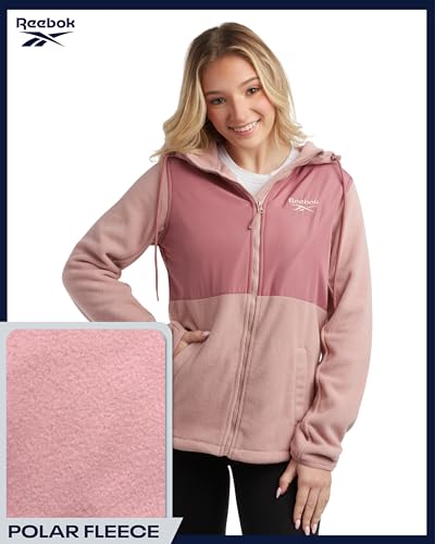 Reebok Womens Fleece Jacket – Lightweight Super Soft Polar Fleece Lined Outerwear – Zip Up Hooded Winter Jackets for Women