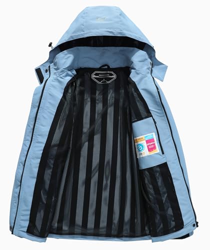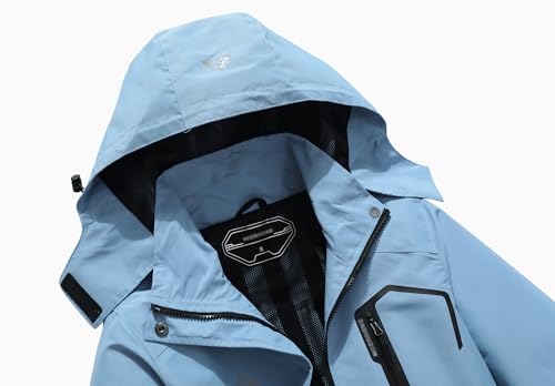 Women’s Waterproof Lightweight Rain Jacket Windproof Breathable Trench Coat Detachable Hood Raincoats Outdoor Hiking Jacket