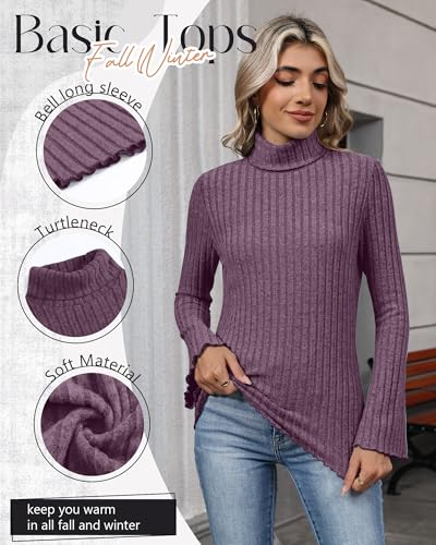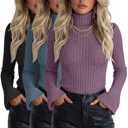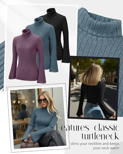 3 Pack Women’s Turtleneck Sweaters Slim Fit Ribbed Knitted Bell Long Sleeve Pullover Shirt Basic Tops Fall Winter