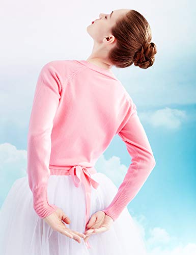 Daydance Women Wrap Dance Sweater Pink Soft Ballet Warm Up Jacket for Leotards