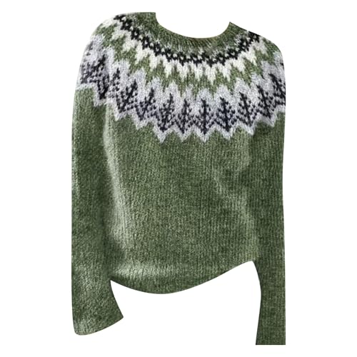 Specification: Fair Isle Sweater for Women Knit Boho Retro Winter Fall Casual Loose Crewneck Long Sleeve Lightweight Pullover 2025