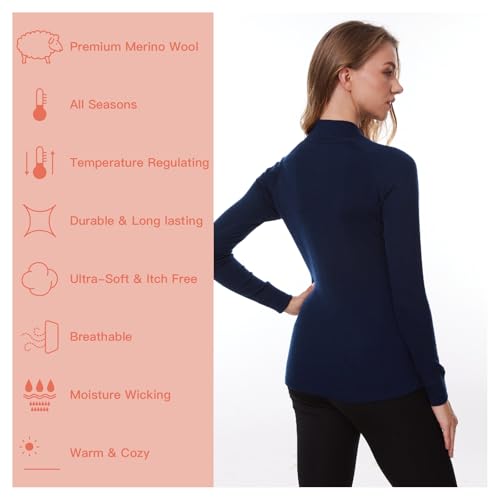 MERINNOVATION Merino Wool Base Layer for Womens Wool Half Zip Sweater Midweight 240gsm