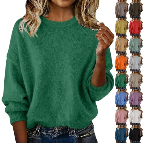 Warm Cashmere Sweaters for Women Crew Neck Loose Long Sleeve Winter Wool Knit Pullover Tops Soft Cozy Tunic Sweater