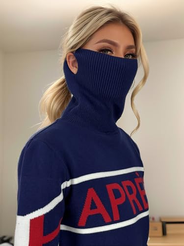 Women Turtleneck Sweaters Apres Ski Shirt with Mask Neck and Glove Sleeve Heavy Thick Fit Thermal Winter Tops