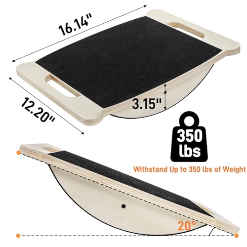 Safety and Durable Structure: This rocker board for adults is made of high-quality plywood, which can withstand up to 350 lbs of weight, ensuring stability, durability and long-term service. The anti-slip surface and protection pads protect both the board and your floors
