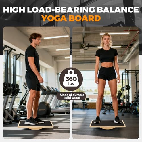 👍 Durable & Safe Hardwood Construction Crafted from solid hardwood plywood, this balance board supports up to 350 lbs. The anti-slip surface offers strong traction, while bottom pads prevent sliding or floor scratches during use