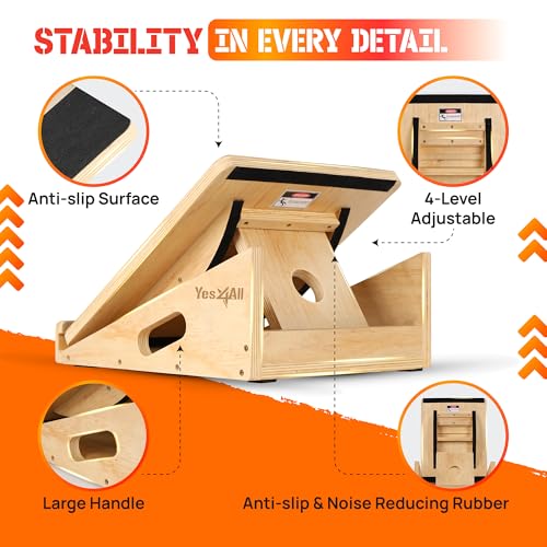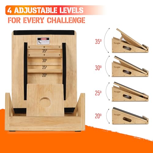 ADJUSTABLE INCLINE FOR CUSTOM WORKOUTS: With 4 levels 20°/25°/30°/35, slant board for calf stretching provides versatile workout options; Squat wedge targets groups like calves, hamstrings, glutes, enhancing the effectiveness of slant board exercises