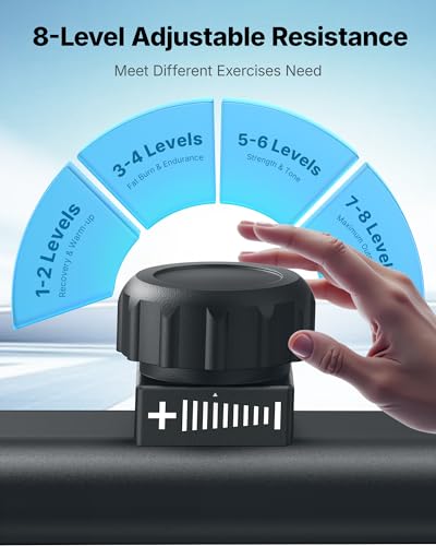8-Level Resistance: The 8-level electromagnetic resistance, powered by a 18 pounds flywheel, offers precise control with a single twist, catering to all exercise needs and suitable for every family member.