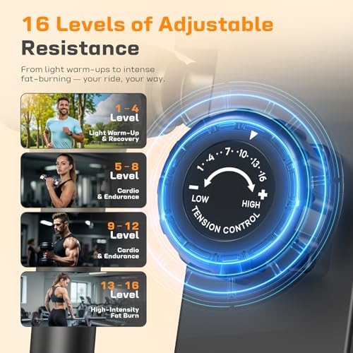 16 Resistance Levels + Digital Monitor: With a 13 lb flywheel and 16 adjustable resistance levels, you can customize your workout for cardio, endurance, or fat burning. The built-in digital monitor tracks time, speed, distance, calories, and resistance, keeping you motivated and on target.
