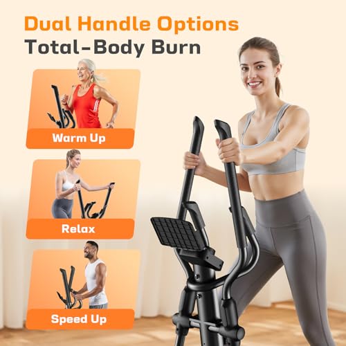 Heavy-Duty, Gym-Quality Build: Built to handle up to 300 lbs, this elliptical offers rock-solid stability and lasting durability. The reinforced steel frame and premium materials guarantee long-term use, so you can confidently train at home like in a commercial gym.