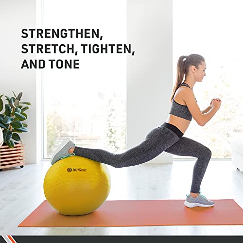 Body Sport Exercise Ball with Pump for Home, Gym, Balance, Stability, Pilates, Core Strength, Stretching, Yoga, Fitness Facilities, Desk Chairs