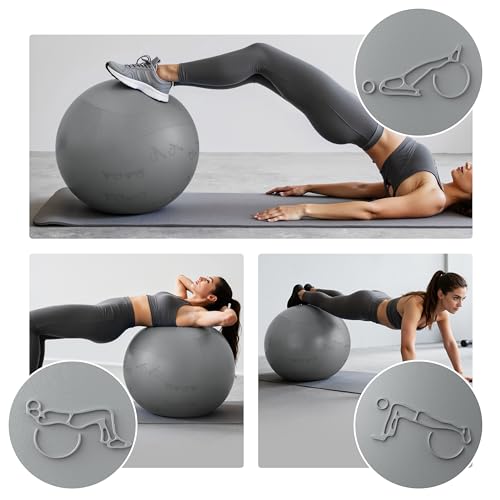 FITMIND Extra Thick Exercise Ball with Embossed Pattern,Yoga Ball 22in/26in/30in for Workout Pregnancy Stability,Anti-Burst and Slip Resistant Swiss Ball with Pump for Yoga, Pilates,Physical Therapy