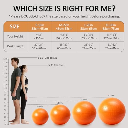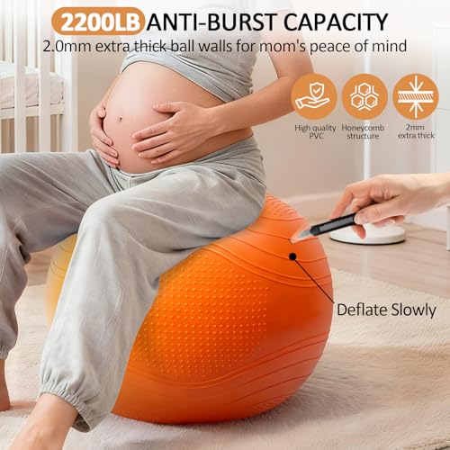 HIGHEST SAFETY-GRADE MATERIALS: This yoga ball is made from top quality PVC material, non-toxic, odorless, and free from harmful heavy metals, passed SGS safety test certification. With a thick 2mm wall-far exceeding standard yoga balls, it supports weights up to 2200 lbs, ensuring unmatched durability.
