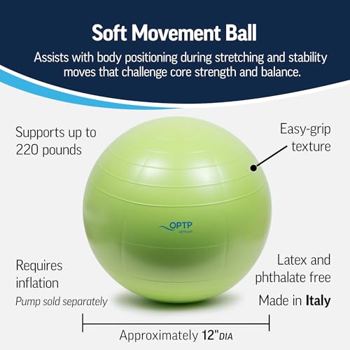 OPTP Soft Movement Ball – 12 Inch Exercise and Pilates Ball for Yoga and Core Stability, Soft Inflatable Physical Therapy Balls Featuring Easy-Grip Texture