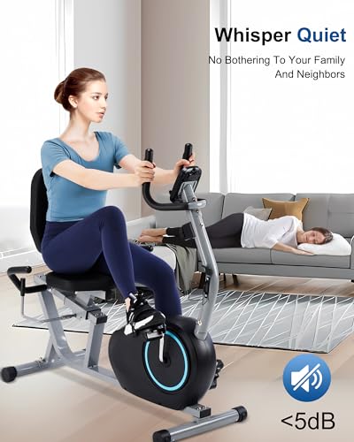 16-Level Quiet & Smooth Magnetic Resistance: With patented reluctance technology, our recumbent bikes for adults keep your workouts ultra-quiet with noise levels as low as 5DB, and makes it ideal for both beginners and professionals. Choose your perfect workout level and achieve optimal efficiency.