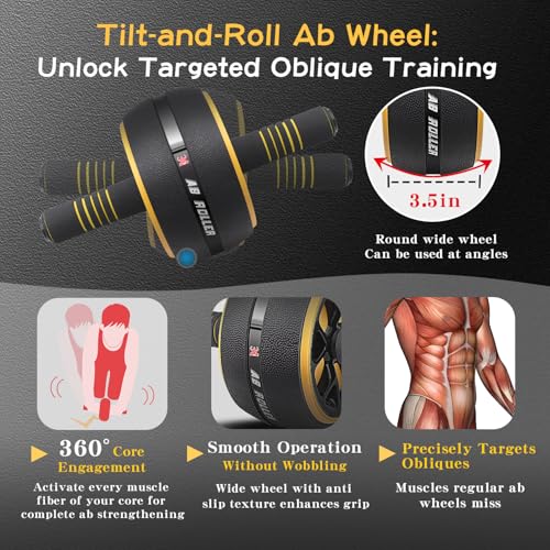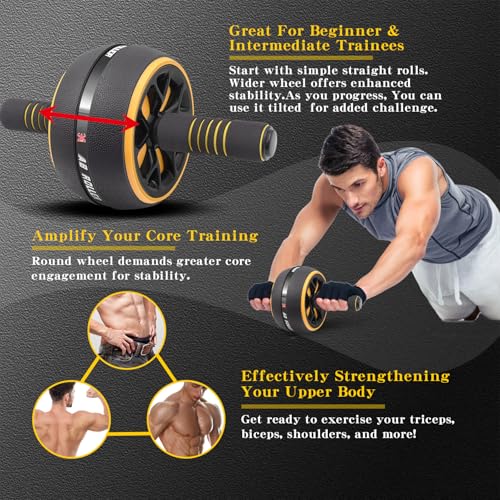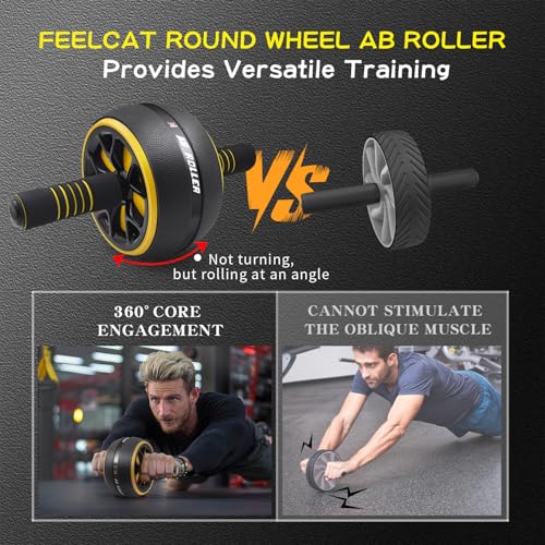 FEELCAT Ab Roller Wheel,Stable Wide Wheel For Beginner,Men,Women,Abs & Core Workout Equipment For Home Gym With Knee Pad,Abdominal Wheel For Full-Body Strength Training
