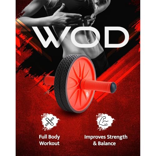 WOD Nation Ab Roller – Black & Red, Modern Core Fitness Equipment for Home Gym & Travel – Ab Wheel for Workout & Core Stability