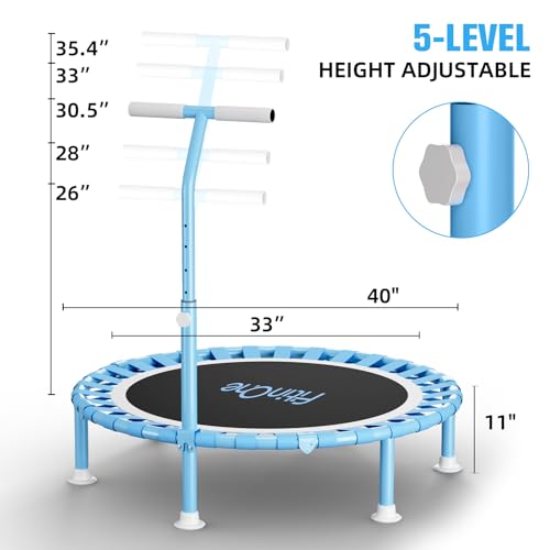 40″ Fitness Mini Trampoline with Adjustable Handle Bar, 330lbs Foldable Bungee Rebounder for Adults and Kids, Stable & Quiet Exercise Rebounder Indoor Workout