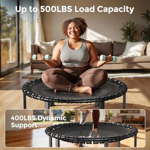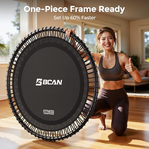 BCAN 40″ Soft Land Pro Fitness Rebounder Trampoline, 500 lb Capacity, Adjustable Tension Bungees, One-Piece Frame (16 Gauge), Quiet Indoor Cardio w/Handle, Phone Holder & 2 Pairs Socks | FED Fitness
