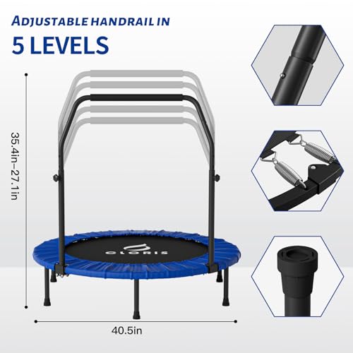 【5-level Adjustable Handle】The fitness trampoline equipment with a 5-level height adjustable handlebar. Jump with confidence