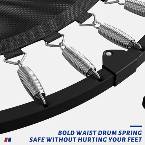 【400 LBS Weight Capacity】32 high-strength bungees, 3 mm thickened steel, and wear-resistant PP mat make the 2025 upgraded fitness trampoline can bear up to 400 LBS
