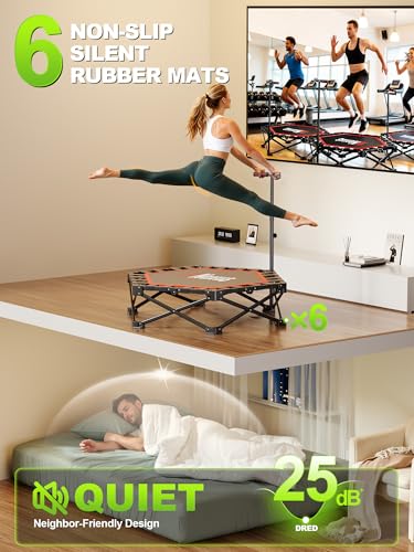 【6-Leg Anti-Slip Design】 The 6-leg anti-slip foam pads keep the trampoline firmly grounded, even during intense workouts. Zero wobbling or tipping—just safe, stable jumps on any floor (hardwood, tile, or carpet).