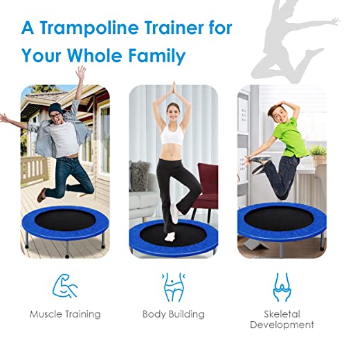Giantex 36″ 38″ Foldable Rebounder Trampoline for Adults, Stable & Quiet Small Exercise Trampoline with Safety Pad, Indoor Outdoor Mini Fitness Trampoline for Adults Kids Workout, Max Load 330lbs