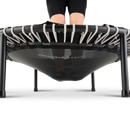 Safer, Quieter & More Durable: Leaps and Rebounds Fitness Trampoline uses superior quality materials to ensure a premium workout experience. The rebounder features bungee cords instead of springs, thick gauge steel to prevent warping, and added rubber washers to keep the legs secure, providing a safer, quieter, and more durable cardiovascular exercise.