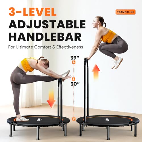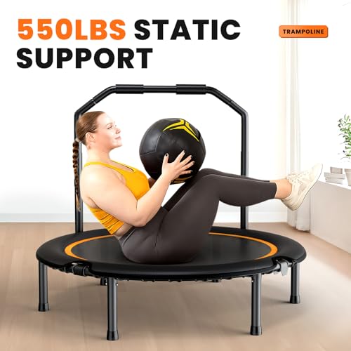 Zupapa 48″ Foldable Rebounder, 550LBS Fitness Trampoline with Durable Bungees, Adjustable Handl, Stable & Quiet Exercise Rebounder for Adults, Great Mini Trampoline for Indoor/Garden Workout