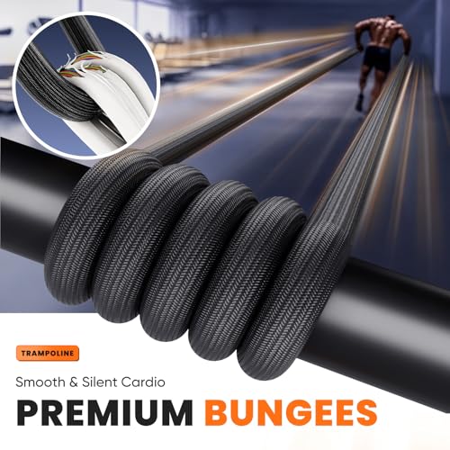 Ultra-Quiet & Joint-Friendly Bungee System: Features 36 heavy-duty 8mm UV-resistant bungees that absorb 85% of impact. Provides smooth, low-impact bouncing to protect knees, back, and joints—ideal for daily cardio and relaxation.