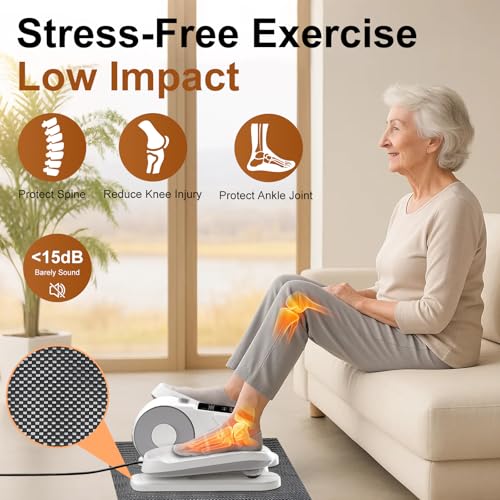5 Modes & Adjustable Speeds: This seated elliptical offers 5 modes: HR mode with 12 speed levels,3 pre-programmed modes (P1-gentle, P2-Walk and P3-Sport) and no electric mode – pedal by your own. Pedals can move forwards or reverse to engage different muscle groups