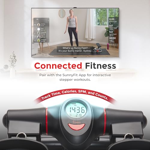 Sunny Health & Fitness 2-in-1 Premium Power Stepper with 400lbs Weight Capacity and Resistance Bands, Low-Impact Cardio, Space-Saving, Height-Adjustable, with Bluetooth and Free SunnyFit App