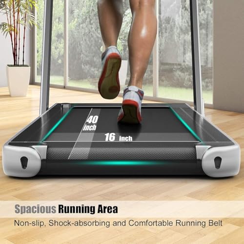 POWERFUL QUIET MOTOR & SHOCK-ABSORBING RUNNING BELT: Equipped with a quiet 2.25 HP motor, this treadmill ensures a peaceful workout experience, perfect for both home and office settings. The 5-layer, non-slip, shock-absorbing running belt offers a spacious running surface designed to minimize impact and protect your knees and ankles.